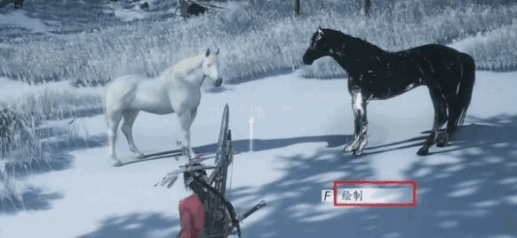 4、靠近马匹后,会出现互动(interactive)光点,点击(dianji)拍照。