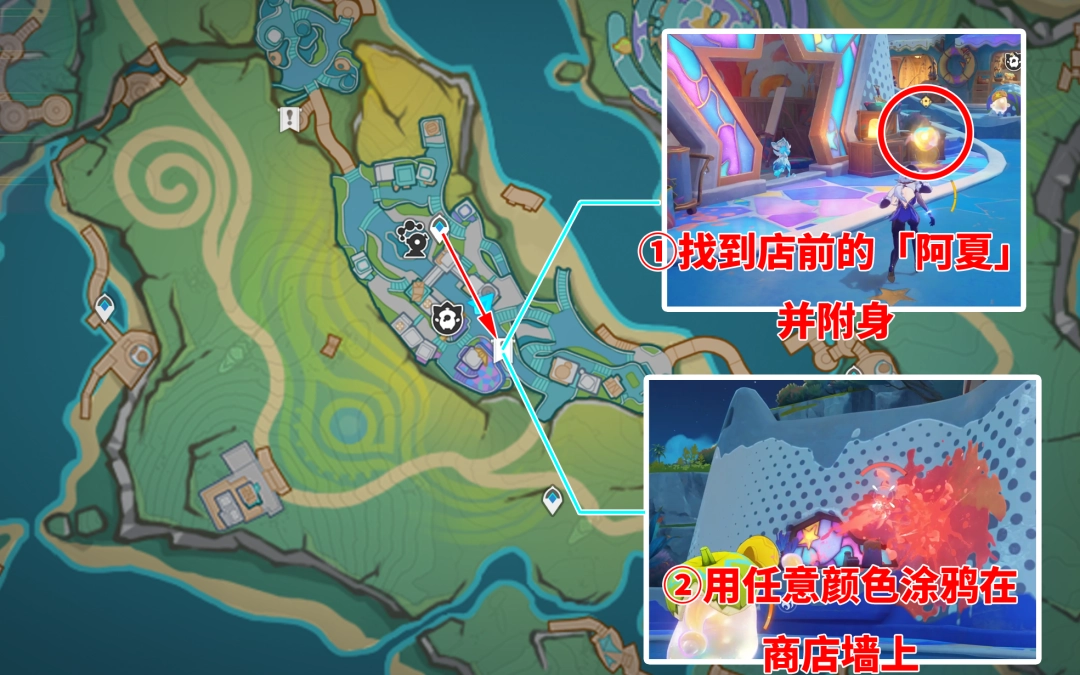 随后操(cao)控(kong)「阿夏」对墙壁(白色斑点区域)进行涂鸦(长按左键)