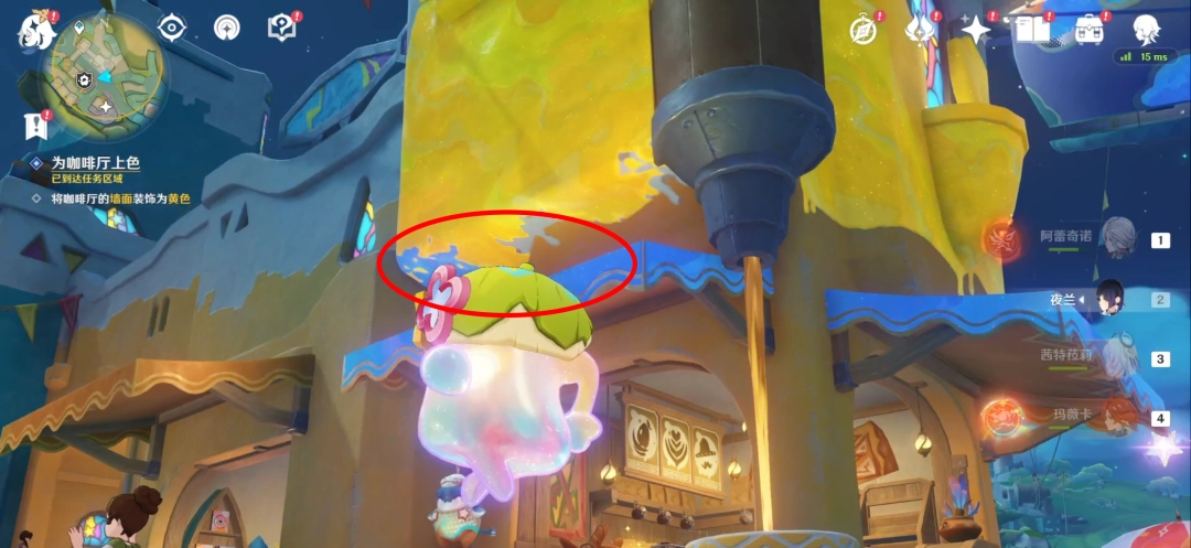 这里还(huan)要(yao)注意,在一侧墙面的下方依然有白色斑点区域,这里不好涂到,如果一直没完成任(ren)务,可以来检查一下这里