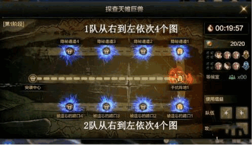 第一阶段这边,首先勇士们只有20分钟的时间,总共的话可以使用20次复活币;针对队伍的强弱,在打法方式上也有些不同。