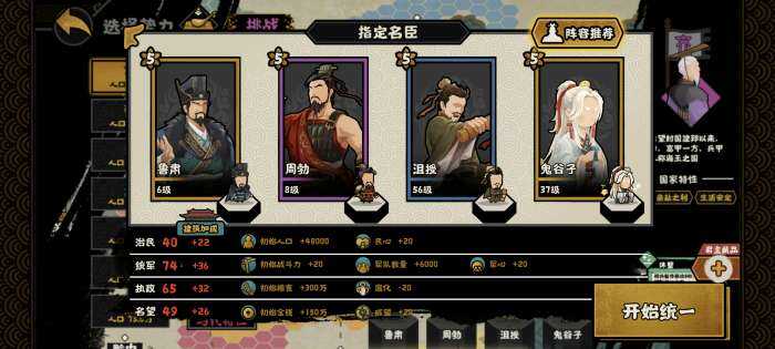 家仆训练所(suo)需(xu)的特资也有稀有度之别。以秦楚汉为例,像是青铜就是最平常的特资,不需要特别配合即可供养一队青铜家仆;工匠较为稀有,需要通过贸易、会盟或卢植进(jin)行补充;马和铁的获取受地域限制较大,南方地区的城市与势力铁多、北方则马多,马开局仍可通过贸易获取,铁则只能通过嫘祖或与夜郎贸易或互通有无获取。因此这两种特资最为稀有,需要刻意通过名臣配合来稳定获取。 有一些名臣既是特资位,又能当主c,如鬼谷子,但这种名臣还是少数。因此,家仆阵也往往可以模块化拆解,一部分名臣负责特资、另一部分名臣负责战斗,由此便可快速组出大量差强人意的家仆阵。 四、家仆阵例子 为了带大家熟悉一下家仆阵的操作,我推荐三个阵容,对应家仆阵中常见的三大流派。这些阵容有一定的强度,同时造价不高,不需要专武金武和氪金名臣也可以打出不(bu)错的战绩。也因此,这些阵容在强度上做出了一些妥协,实际情况下往往有更多更好的选择。