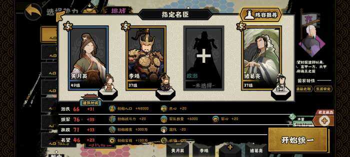 3、是名臣政策,这是最为稳定的途径,如周勃、卢植、嫘祖、杜康、乐毅、李靖等名臣可以通过其名臣政策来获取特资,从而使特资收支相抵、全局生效。