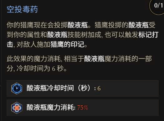是因为(yinwei)暗金衣和鹰技能树里的投掷酸液瓶的联动,鹰投掷相当于角色消耗(hao)药水,这个联动利用暗金腰带和嗑药回蓝词条能在后期极大提升伤害和生存,但是有人反映鹰把药消耗(hao)完了没法喝药解控(是不是刷太慢了),暂且取消鹰的技能点