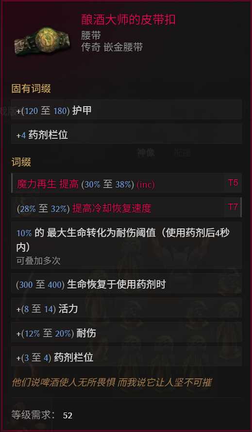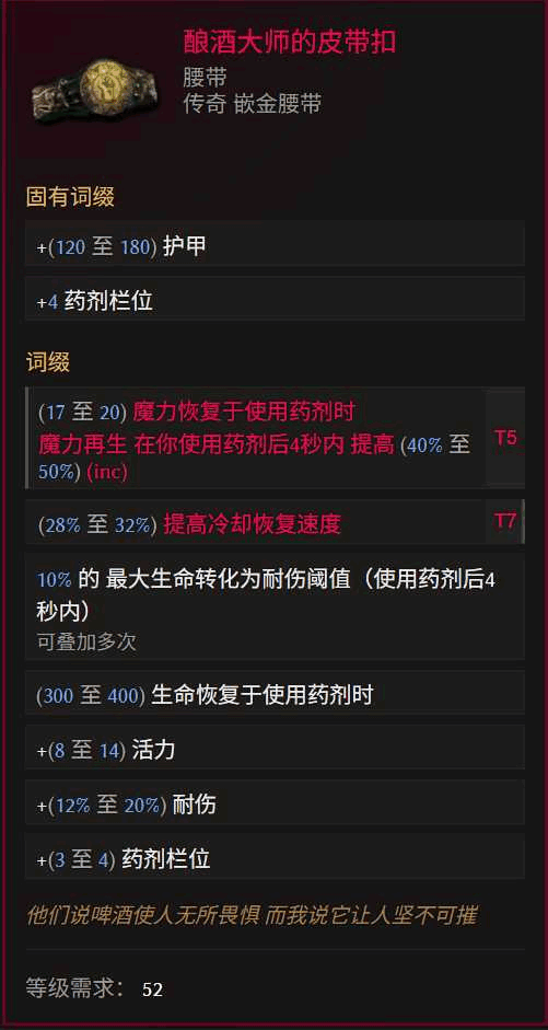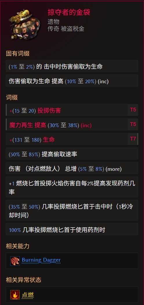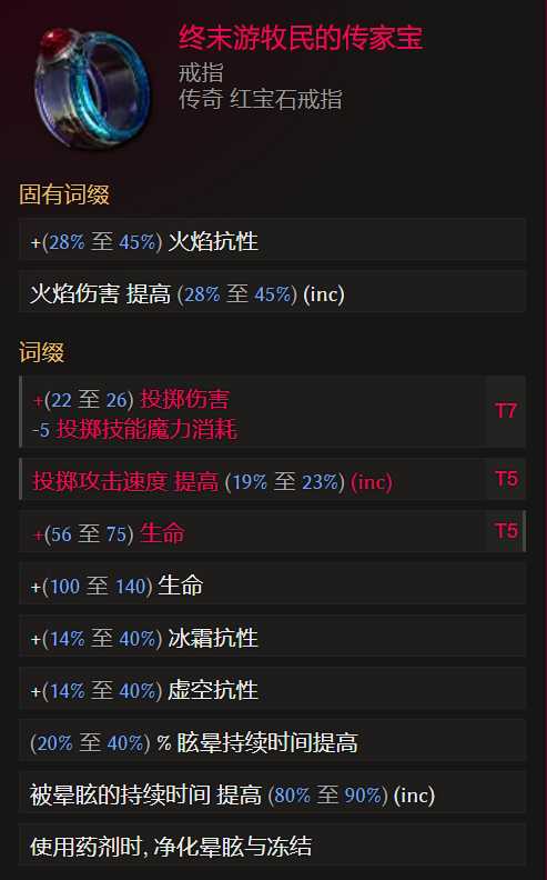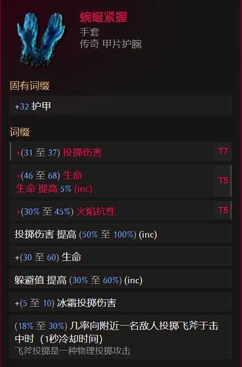 合成词缀优先级:T7投掷伤害>>>投掷速度=魔力再生>火焰抗性=生命