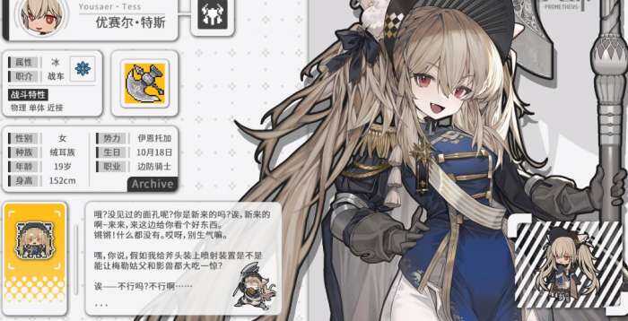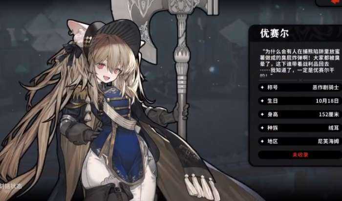 游戏里可以选择的角(jue)色(se)非常多,优赛尔特斯是众多角(jue)色(se)的其中(in)一个,作为一个冰属性角(jue)色(se)的成员,角(jue)色(se)会用物理单体攻擊进行近距离的战斗,每次对战的时候都会手持斧头,这个角(jue)色(se)的身份是一名边防战士,所以战力是非常优秀的,比较喜欢冰属性对战的玩家,可以选择这个成员,可以利用(use)这个角(jue)色(se)比较喜欢保家卫国的特(te)性,在对战的过程中打出较高的伤害,角(jue)色(se)的外观也很有辨识度,会梳着黄色的双马尾,和角(jue)色(se)的职业有很大(da)的(de)反差。