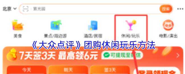 1、大众点评首頁或“休闲玩乐”分类中找到憾興趣的项目,如KTV、足疗、电玩城等。