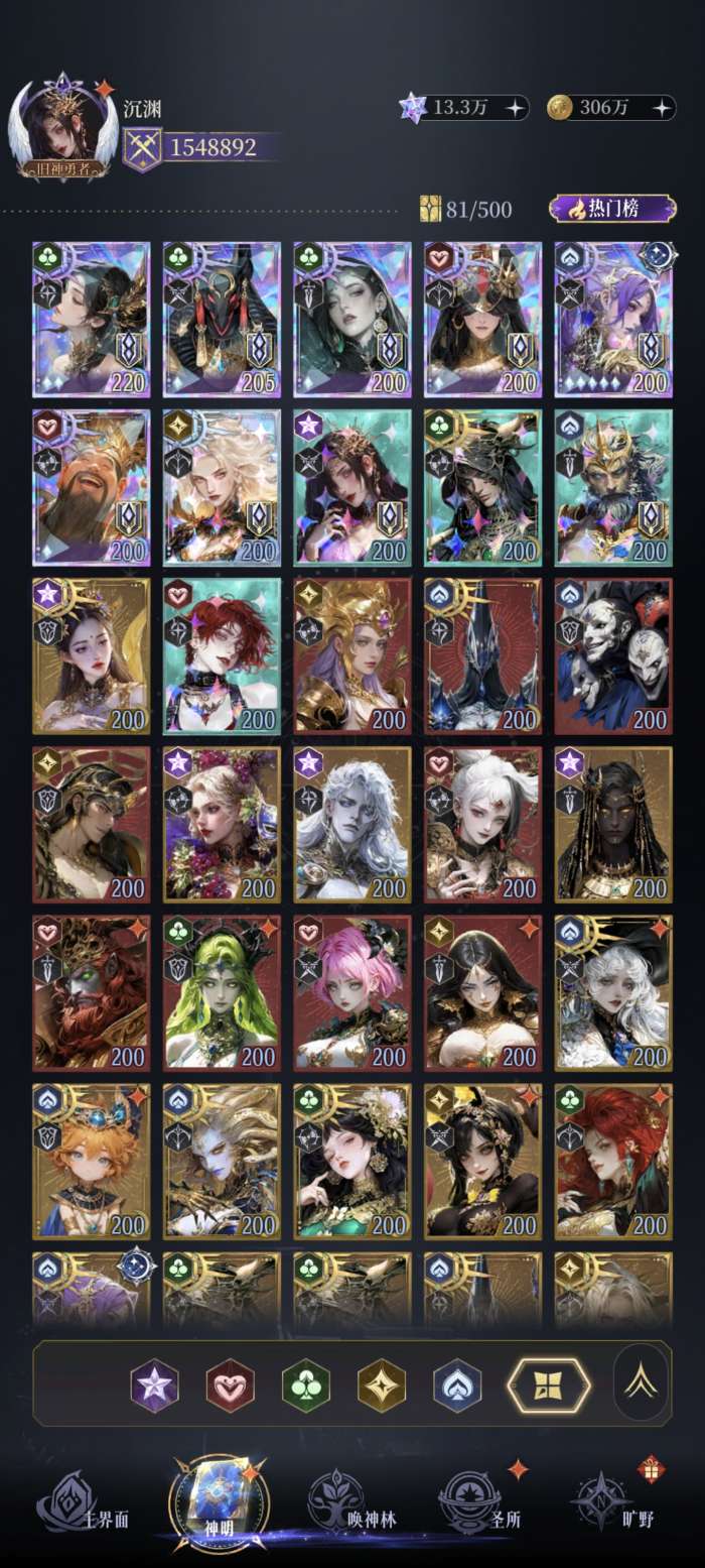3、伊西斯,不用专门抽取,世界BOSS刷伤害的神,神器1即可。
