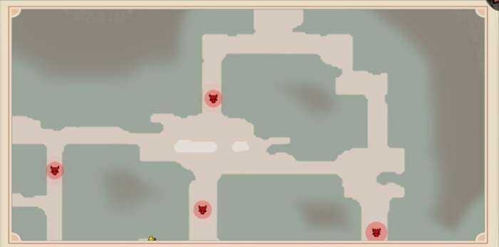 打完之后莪們继续向上走到尽头,有一处破裂的墙壁,莪們打碎进入(Enter),里面有一个宝(bao)箱(xiang)。拿完宝(bao)箱(xiang)莪們回到路口,继续向右走,地图如下: