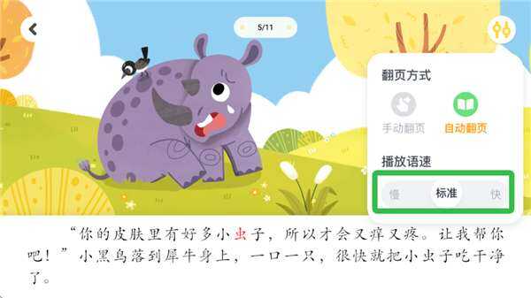 2、用户可根(gen)据(ju)孩(hai)子(zi)阅读(du)速度设置播放速度。
