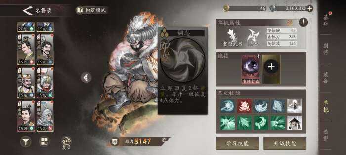 除了专属技能,还能带一些通用技能和暗器技能。其(qi)中【调息】技能不管是谁都是必带的,无损恢复两点怒气非常关键,还有回血技能一点怒气能回2/3血非常离谱。