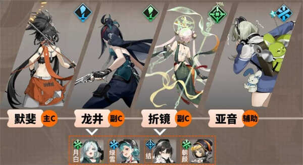 折镜:最好不要替换,因为其能频繁带动1名阵容中攻击最高的角色普攻,能快速帮助主C叠 满亚音的<谐波>层数,同时折镜的易伤搭配上亚音给主C的加成,使主C能打出非常高的伤害。