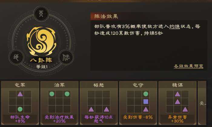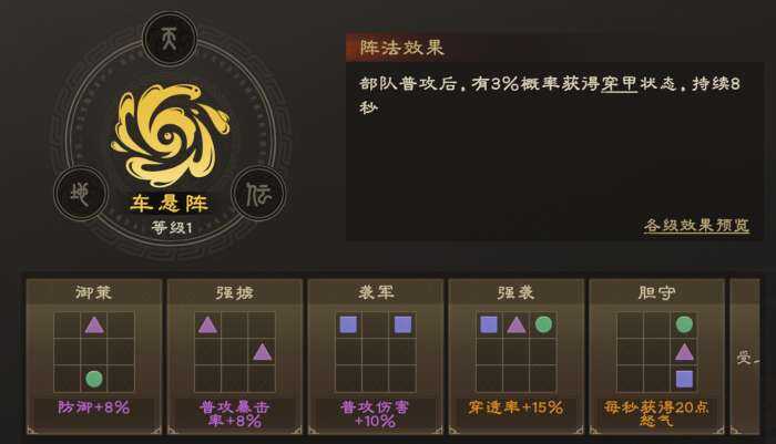 每个英雄都有相应的定位,我们要基于定位配置阵法,武将(wujiang)的3星天赋效果也与部队携带的阵法相关,必须要选择相应的阵法才能获得加成(addition)。